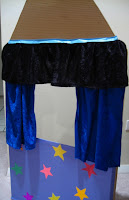 Ocak ayının yarısına geldik bile; yeni yıl hedefleri ile uğraşıyoruz bakalım. Babaannemizin yeni yıl için aldığı hayvan karakterli el kuklalarını oynatmak üzere bir kukla tiyatrosu yapmak 3. maddeye giriyor sanırım. Uzun zamandır IKEA dan aldığımız oyuncak kutusunun kartonunu saklamamın nedeni birkaç oyuncak ve bebek ürünleri kataloğunda görüp ben bunları kendim yaparım dediğim kukla tiyatrosuydu. Evde oyuncak yapmak için biriktirdiğim karton kutu, plastik şişe ve kapakların evimizi çöp eve çevirmesi yüzünden, yakında kocacığım bizi terkedip gitmeden dün akşam oturdum bir çırpıda yapıverdim. Daha uzun sürecek zannediyordum ama bir gecede bitti.
