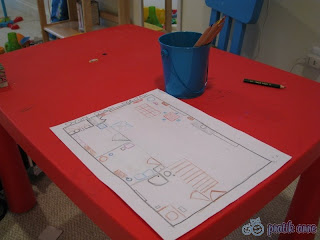 Bu yüzden Montessori eğitimi konuları içinde bulunan odamızın veya evimizin haritasını çizelim etkinliği yaptık. Bunu tamamen ben yönlendirdim. Kıpırcan resim yapmaya çok meraklı bir çocuk değil. Teşvik etmek gerekiyor devamlı. Aklına gelip, şimdi ben birşey çizeyim, resim yapayım demez. O yüzden ben kağıdı ve boya kalemlerini alıp işe başladım. Oyun odasının krokisini çizmeye başladık. Açıkçası ilk başta kesinlikle ilgilenmedi. Bir baktı, iki gitti oyuncakları ile oynadı ama ben anlata anlata yavaş yavaş çizmeye devam ettim.