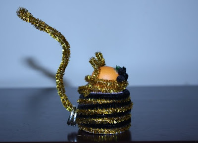 Önce kapakları üstüste yapıştırın. Sonra seçtiğiniz telleri alttan başlayıp yukarı sararak kapakları kaplayın. Arada kuyruğu sokup diğer tele tutturmayı unutmayın. En tepede kulakları bükün. İki parça bıyık ve göz kesip öne yapıştırın.