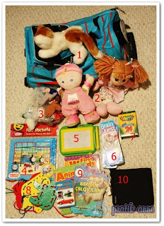 Kısa yol için hazırladığım animasyon çantasının içindekiler. Siz de araba veya otobüs yolculukları için 1-4 yaş arası çocuğunuzu eğlendirecek bir çanta hazırlıyorsanız, fikir olsun diye detayları listeliyorum.