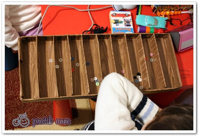 Aynı şekilde spindle box ortaya çıkınca çubuklardan evvel düğmeleri çıkardım. Kıpırcan sayılara göre ayırdı. Kımılnaz düğmeleri boşalttı doldurdu. Herkes kendi çapında eğlenip oyalanıyor.