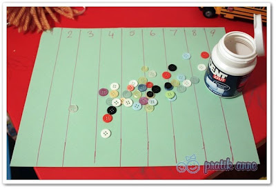Renkli A4 kağıdına yanyana sekiz çizgi çizip tepelerine 1 den 9 a kadar sayıları yazdım. Her sütuna tepedeki sayı da gösterdiği kadar düğme koymasını söyledim.