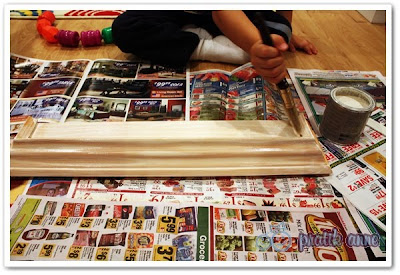 İki çocukla tatil – Bölüm 4 yazımın Oyun kısmında yazdığım hediyelik eşya rafını da Kıpırcan ile beraber boyadık ve taktık.