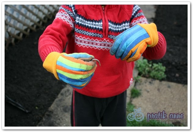 Çocukların kendilerine ait eldivenleri ve kürekleri vs var. Hem Kıpırcan, hem Kımılnaz muhakkak herşeye her adımda yardım etmek istiyorlar. Toprağı bellemek olsun, düzlemek olsun, tohum ekmek, yabanı otları yolmak olsun. Kural: o anda benim elimde ne varsa, o an o alet alınıp kullanılacak. 🙂 Gerisi farketmez.