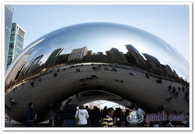 Fotoğraf: The Bean (Fasülye) e yansıyan güney Michigan Avenue, Millenium Park, Chicago, IL, Mart 2010