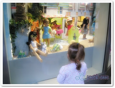 Ciğerci kedisi Chicago şehir merkezinde “The American Girl” mağazasının vitrininde yalanırken