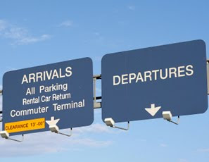 Bir Arrivals (Geliş) terminalindeyiz, bir departures (gidiş) terminalinde.